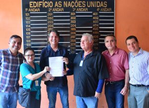 Representantes da Prefeitura Municipal de João Pessoa (PMJP) receberam, na tarde desta quarta-feira (11), das mãos dos oficiais de justiça, a imissão na posse, documento que equivale à desapropriação, do Edifício Nações Unidas, localizado no Centro, onde irá funcionar o mais novo Shopping Popular da Capital. O espaço irá beneficiar cerca de 350 ambulantes que atualmente trabalham nas ruas da cidade, garantindo um local mais confortável e seguro, o que irá atrair um bom fluxo de clientes.